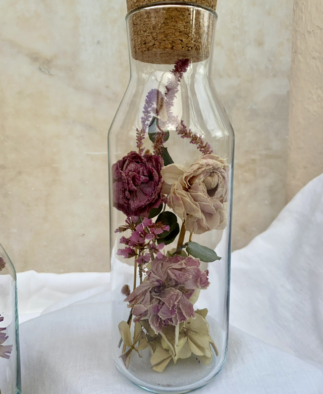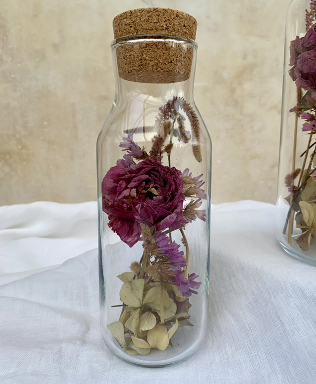 Each bottle is made individually and can vary slightly in shade and flowers used.