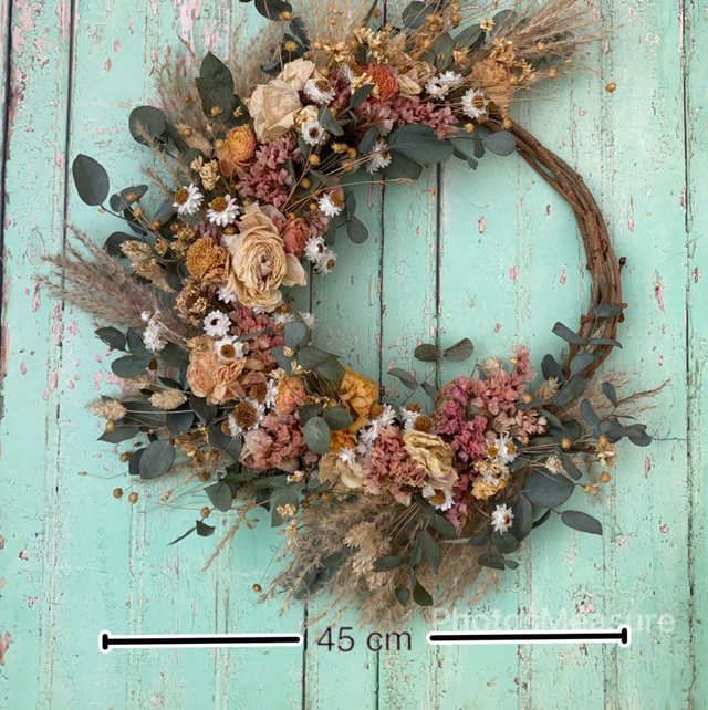 This wreath measures approximately 45cm at its widest point.